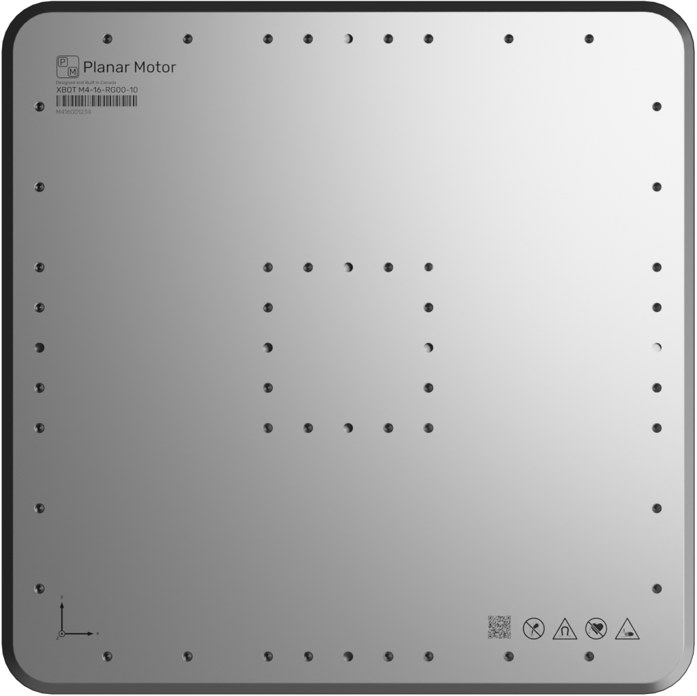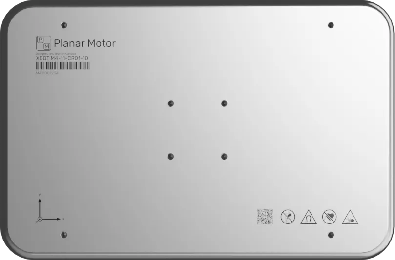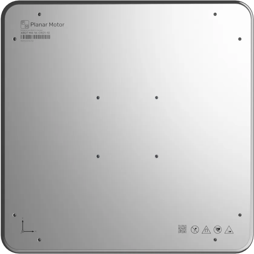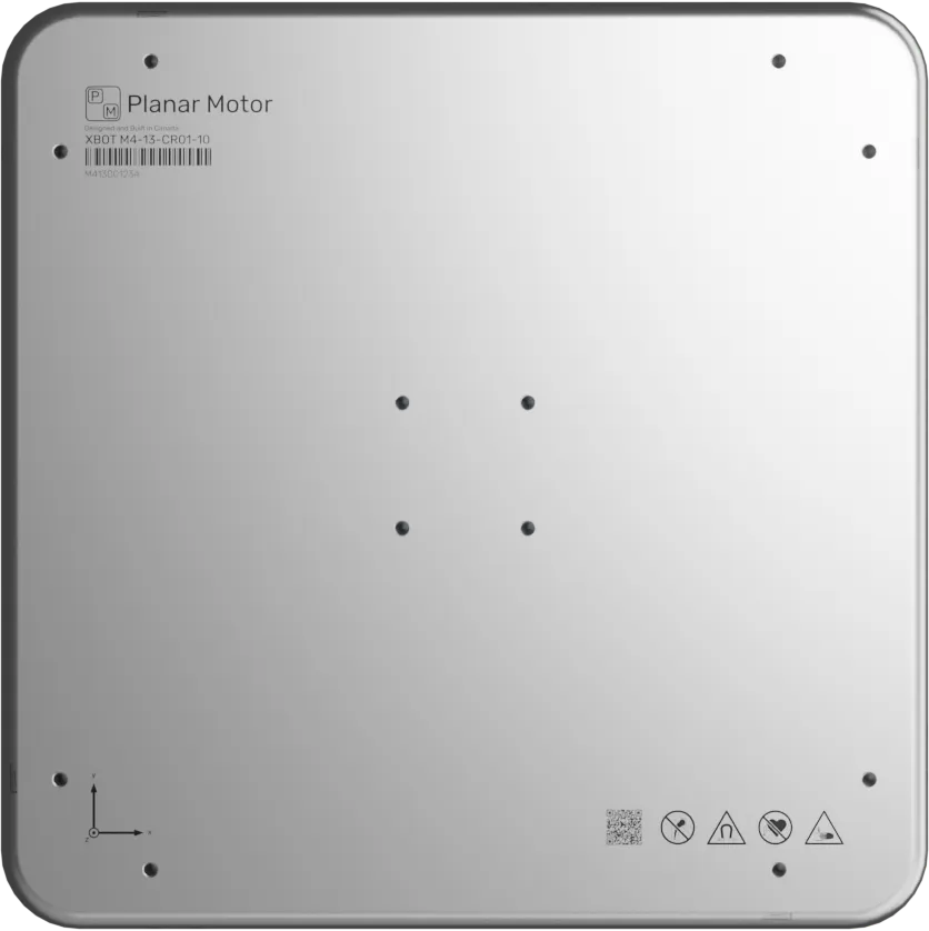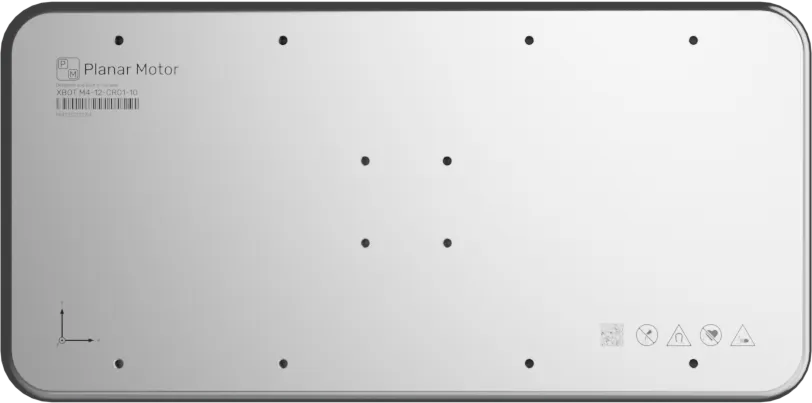 XBots (movers) are magnetically levitated above the surface of Flyways. They rely on incredibly strong directional permanent magnets which focus the magnetic field beneath them and minimize it above the XBot, creating a safe mounting surface for products and accessories. With multiple threaded mounting holes and dowel pin locations, there are many possibilities for fixturing. M4 XBots are available in sizes starting at 160mm x 160mm and larger.