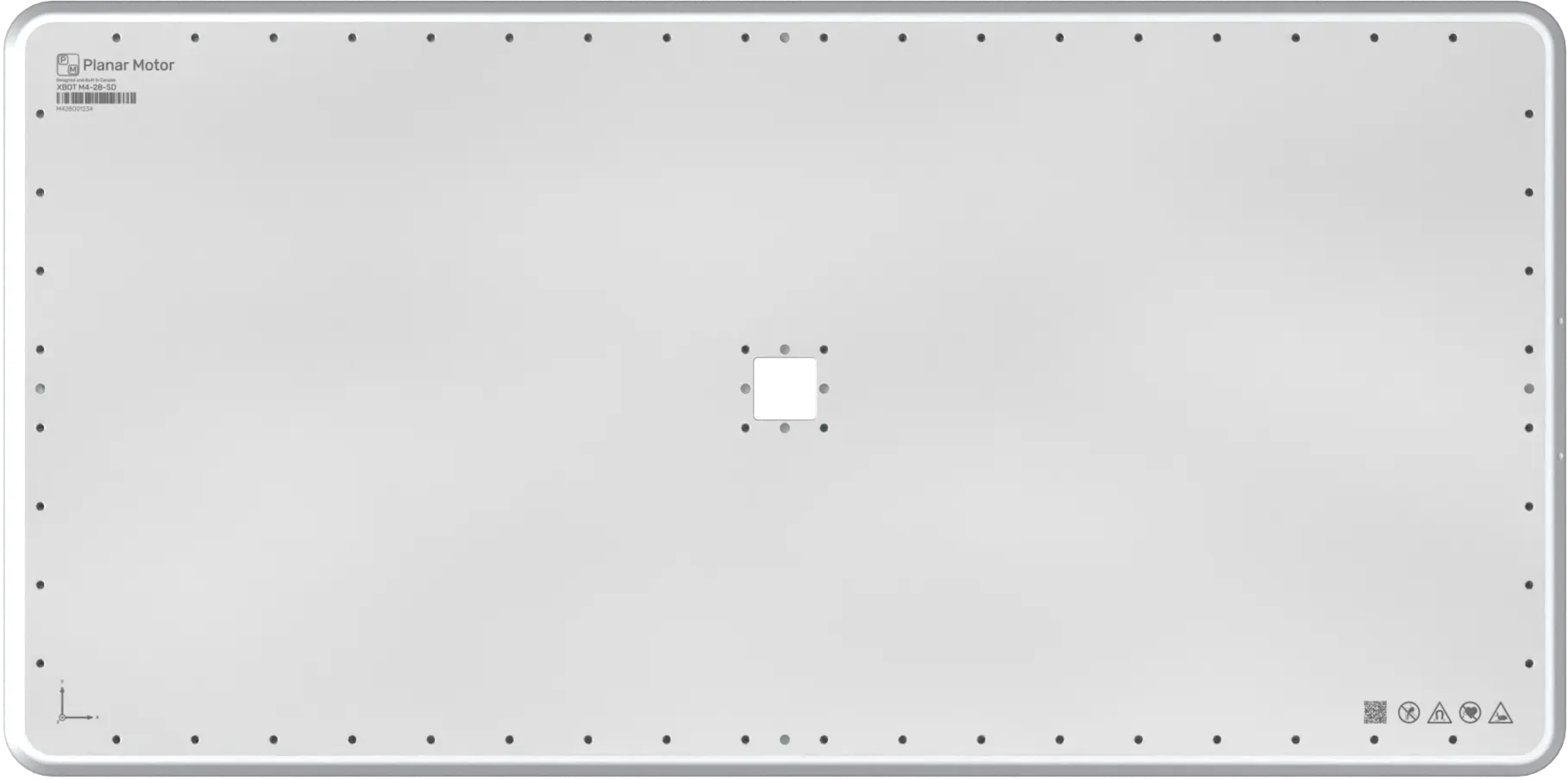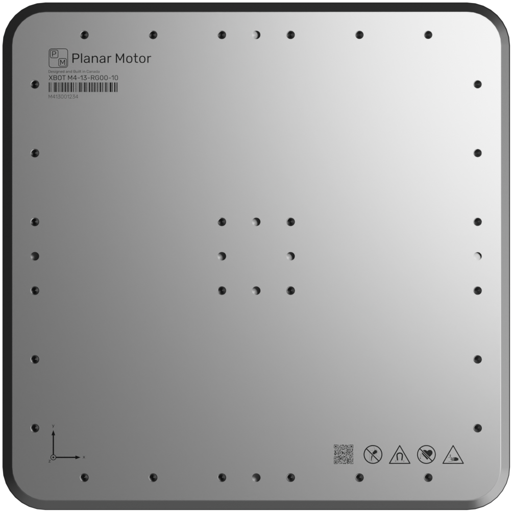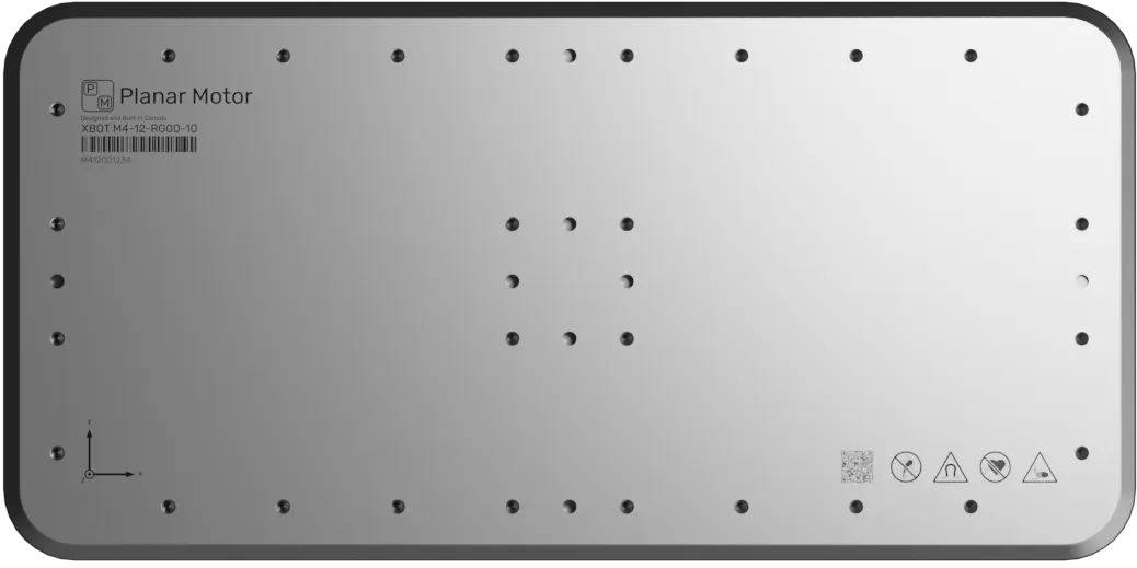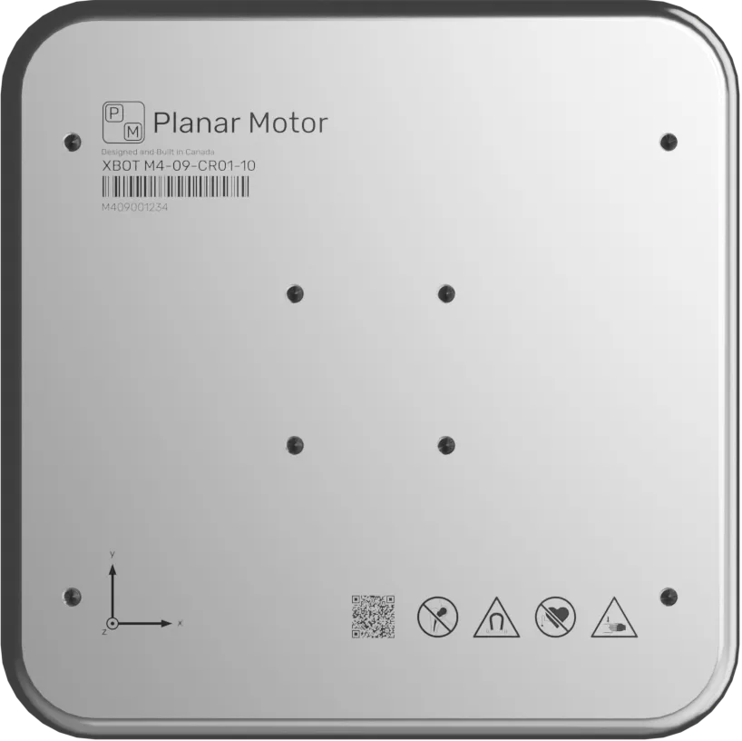 XBots (movers) are magnetically levitated above the surface of Flyways. They rely on incredibly strong directional permanent magnets which focus the magnetic field beneath them and minimize it above the XBot, creating a safe mounting surface for products and accessories. With multiple threaded mounting holes and dowel pin locations, there are many possibilities for fixturing. M4 XBots are available in sizes starting at 160mm x 160mm and larger.